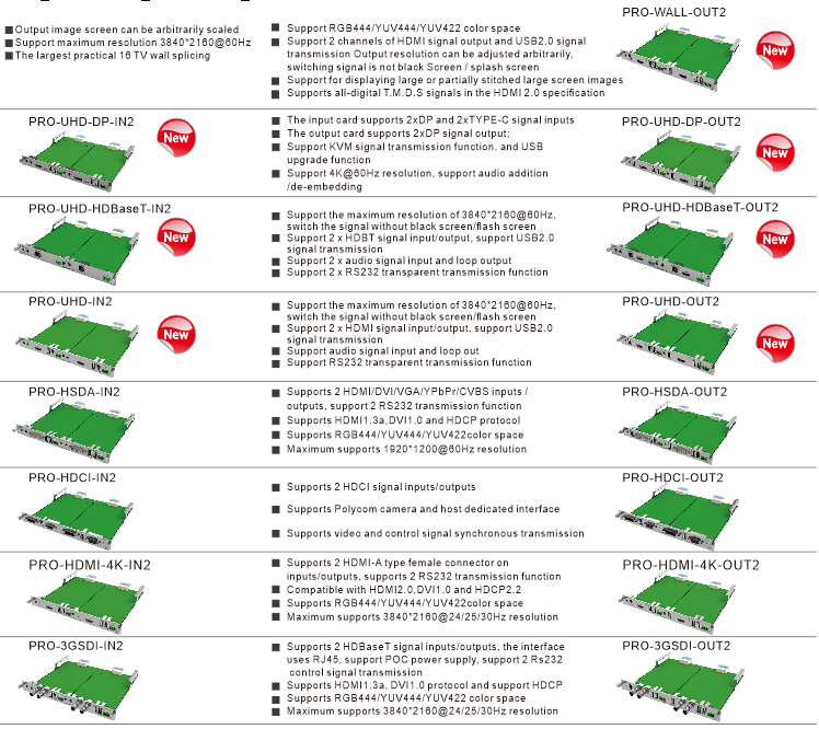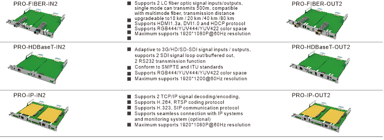 > Support HDMI,DVI,HDBaseT,3GSDI,VGA,CVBS,Ypbpr,HDCI, Fiber signal formats transmission and H.323, SIP transmission protocol, seamless A/V Over IP Streaming, IP surveillance system, video conference system and recording system.